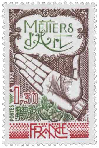 | Commentaire | Au milieu des années 1970, la France engage une réflexion de fond sur la place du travail manuel et la sauvegarde de savoir-faire menacés par l’industrialisation et la standardisation des modes de production, contexte dans lequel ce timbre consacré aux métiers d’art prend tout son sens. En 1976, les pouvoirs publics arrêtent un programme spécifique visant à la fois la revalorisation des gestes artisanaux et la protection du patrimoine, notamment à travers la création d’un Institut de restauration fédérant les métiers impliqués dans la conservation des monuments et des œuvres. Parallèlement, l’ouverture à Paris d’un Centre d’information et de documentation sur les métiers d’art marque la reconnaissance institutionnelle d’activités longtemps reléguées à la marge, malgré leur rôle essentiel dans la transmission des techniques et des formes. Ce timbre traduit cette volonté de mise en lumière sans chercher à illustrer un métier particulier, mais en évoquant l’ensemble du champ artisanal par une composition symbolique. Le fond graphique, inspiré d’une trame de métier à tisser, suggère la diversité des pratiques, tandis que la main ouverte, placée au centre, incarne le lien direct entre la conception et l’exécution, principe fondamental des métiers d’art. Le bourgeon qui émerge du sol renvoie à l’idée de renaissance et de continuité, soulignant que ces savoir-faire ne relèvent pas seulement du passé, mais participent pleinement aux enjeux culturels et sociaux contemporains. À travers ce timbre, la politique postale française accompagne un mouvement plus large de redécouverte du « bel ouvrage », perçu comme une réponse aux aspirations nouvelles liées au sens du travail, à la qualité et à la durabilité. Cette émission s’inscrit ainsi dans une série de timbres de France attentifs aux évolutions sociétales, utilisant l’objet postal comme vecteur de reconnaissance et de transmission des valeurs attachées aux métiers d’art. Article rédigé pour WikiTimbres |
