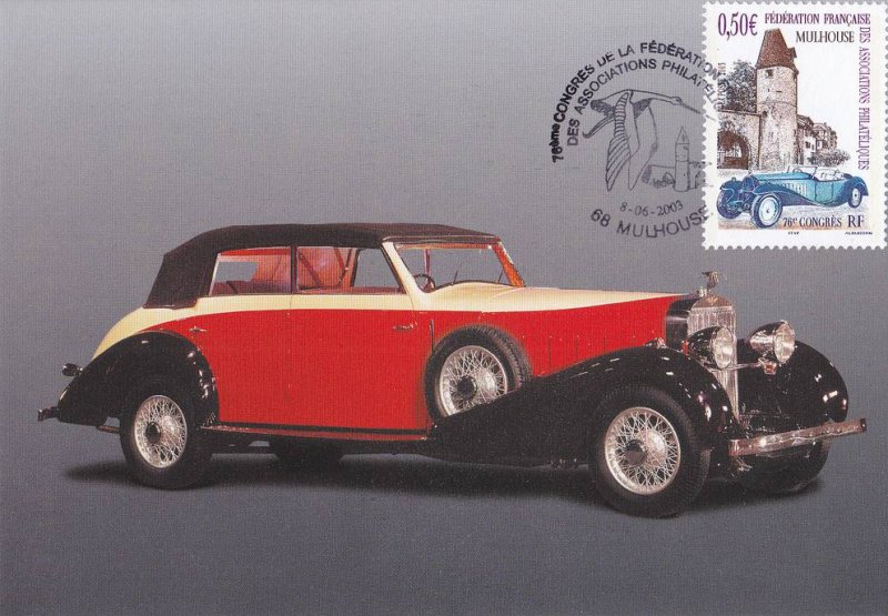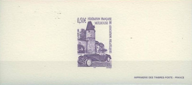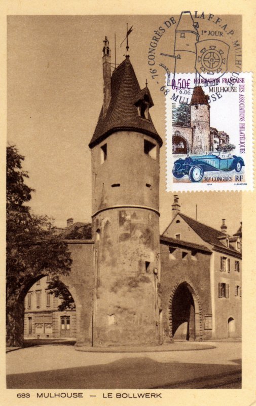 | Description | 76e Congrès de la Fédération française des associations philatéliques, à Mulhouse. Illustré par une voiture ancienne rappelant la présence du musée national de l'Automobile, stationnée devant le Bollwerk, un vestige des anciennes fortifications |