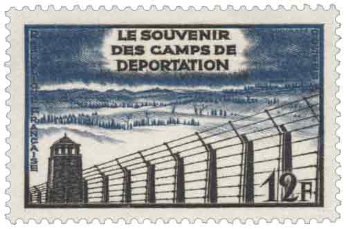 | Commentaire | Émis en 1955 pour commémorer le dixième anniversaire de la libération des camps de déportation, ce timbre-poste français s’inscrit dans les émissions mémorielles de l’après-guerre visant à rappeler la réalité du système concentrationnaire nazi et à entretenir le souvenir des victimes, la figurine gravée en taille-douce et imprimée en format horizontal traduisant par une composition sobre et symbolique la gravité du sujet, tandis que son inscription dans l’année 1955 témoigne de la volonté des pouvoirs publics d’ancrer durablement cette mémoire dans la conscience collective, la place de ce timbre dans la philatélie française rappelant le rôle du timbre comme vecteur de transmission historique, une information historiquement établie étant que les cérémonies du dixième anniversaire réunirent en 1955 de nombreux survivants des camps libérés au printemps 1945. |