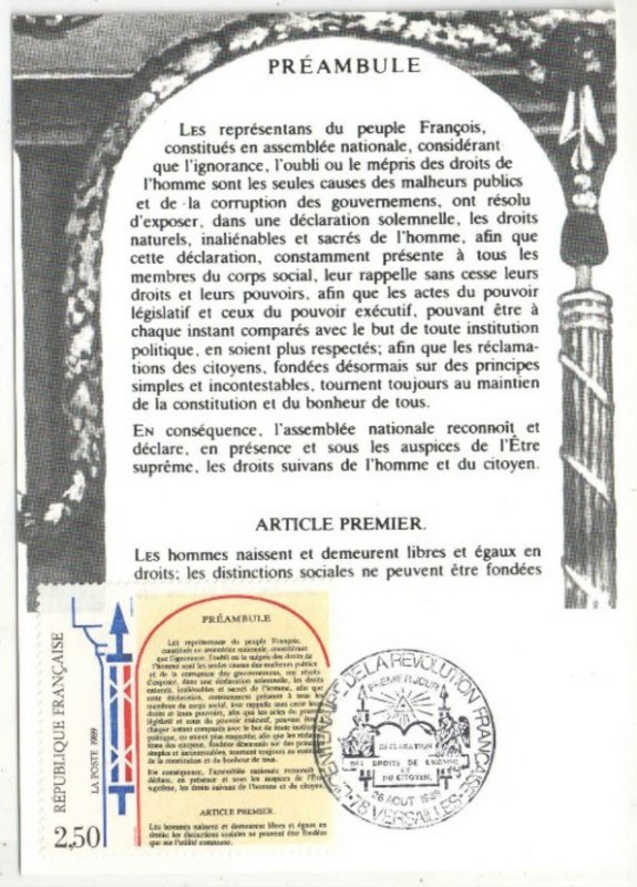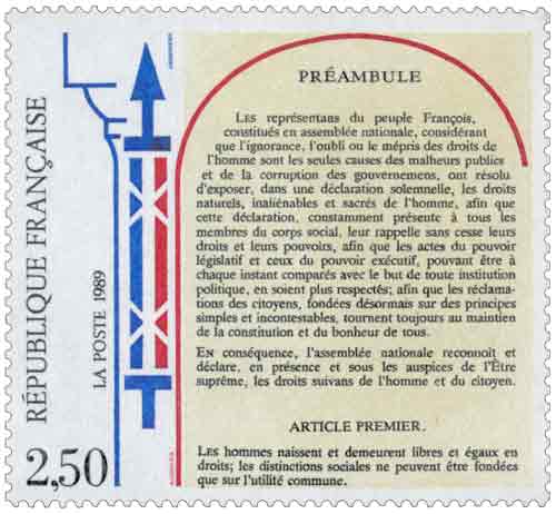 | Description | Bicentenaire de la Déclaration des Droits de l'Homme et du Citoyen - Préambule et article premier |