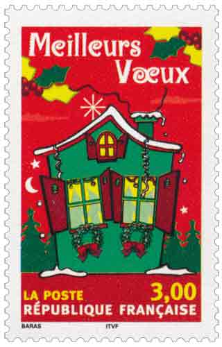 | Description | Meilleurs Vœux. Maison dont la façade est décorée pour Noël |