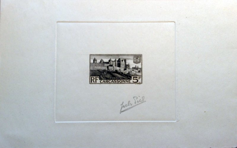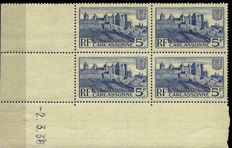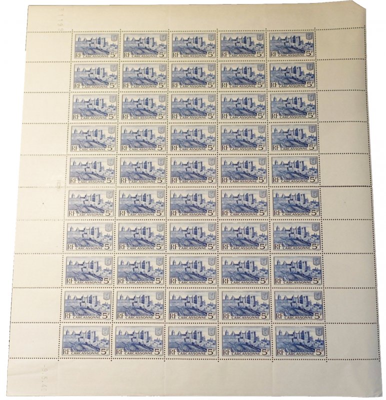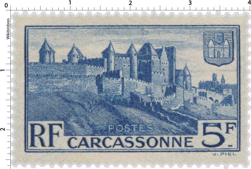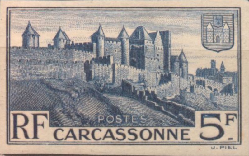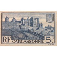 | Commentaire | Visuel : le château comtal et les remparts sont un chef-d'œuvre d'architecture des périodes : gallo-romaine, wisigothe, médiévale de la sénéchaussée royale. La cité fut sauvée par Jean-Pierre Cros-Mayrevieille (1810-1876, historien et archéologue originaire de Carcassonne), puis restaurée d'environ 30%, par les recherches et travaux de l'architecte Eugène Viollet-le-Duc, puis par certains de ses élèves, de 1855 et 1913. Émis le 20 avril 1938 dans la série des sites et monuments, ce timbre de 5 francs outremer présente la cité fortifiée de Carcassonne, avec son château comtal et ses remparts. Dessiné par Roger Chapelain-Midy et gravé en taille-douce par Jules Piel, il est imprimé en rotatif sur presses à feuilles de 50 exemplaires. Tiré à 50 millions d'exemplaires, il correspondait notamment aux tarifs élevés du régime intérieur ou aux envois recommandés. La cité de Carcassonne, chef-d'œuvre d'architecture gallo-romaine et médiévale, fut profondément restaurée au XIXe siècle par Eugène Viollet-le-Duc, qui reconstruit tours et courtines dans un style néo-médiéval pour préserver cet ensemble exceptionnel classé parmi les plus vastes fortifications d'Europe occidentale. |