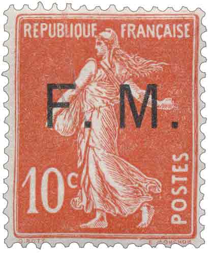 | Commentaire | Impression en planche de 300 timbres Émis sous forme de feuille de 150 TP . Envoyées par les militaires Sous officiers et hommes du rang à raison de 2 timbres par mois pour chaque homme. Retrait le 30 juin 1929, mais utilisation jusqu'à extinction des stocks. En ce qui concerne les couleurs du timbre, il existe de nombreuses nuances : Rouge terne, rouge foncé, rouge orangé, rouge vermillonné, rouge vif, rouge sang etc. (Les feuilles de timbres qui devaient être surchargées FM étaient prises dans les stocks détenus par l'imprimerie des timbres poste, ou des restes de tirage qui n'avaient pas été distribués aux différents bureaux de poste ce qui explique la variété des nuances) Voir la vidéo "Histoires de timbres" |