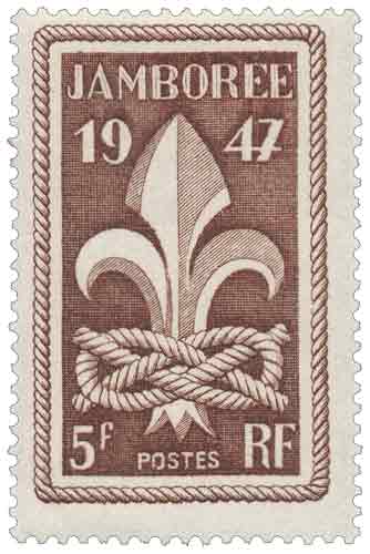 | Commentaire | Émis en France en 1947, ce timbre gommé commémoratif est consacré au Jamboree de 1947, rassemblement international de scouts marquant la reprise des grandes rencontres du mouvement scout après la Seconde Guerre mondiale ; dessiné et gravé par Jules Piel, il s’inscrit parmi les timbres commémoratifs français de l’année 1947 et met en avant un sujet à portée culturelle et éducative, lié au scoutisme, sans prolongement en série, avec une iconographie symbolique plutôt que narrative ; imprimé en taille-douce rotative, le timbre est destiné à l’affranchissement courant et reflète les usages postaux de l’époque pour un timbre de valeur moyenne, tandis que le contexte historique directement lié au sujet rappelle qu’un jamboree est une réunion internationale de scouts, celle de 1947 ayant valeur de symbole de réconciliation et de reprise des échanges internationaux dans un cadre non politique, ce qui explique le choix de ce thème par l’administration postale française dans l’immédiat après-guerre. |