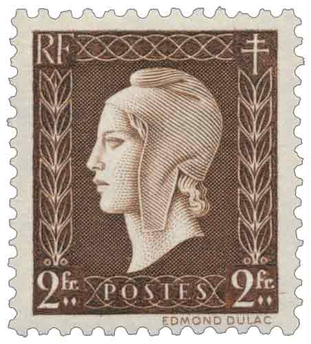 | Commentaire | Le timbre gommé de 2 francs brun de la série Marianne de Dulac, émis en France en 1945, appartient aux figurines d’usage courant mises en circulation après la Libération afin d’assurer la continuité des services postaux tout en réaffirmant l’iconographie républicaine, avec une Marianne dessinée et gravée par Edmond Dulac puis reprise et gravée par Léonard Vincent Phillips ; mis en vente générale le 17 mars 1945, il est destiné à l’affranchissement de la lettre simple pour l’intérieur à une période de réorganisation progressive des tarifs et des flux postaux, et s’intègre dans la série complète des Marianne de Dulac caractérisée par son format réduit, sa dentelure spécifique et son impression en taille-douce à plat, technique choisie pour garantir une qualité d’exécution élevée malgré les contraintes matérielles de l’après-guerre, cette valeur faciale occupant une position intermédiaire essentielle dans l’éventail des usages quotidiens couverts par la série. |