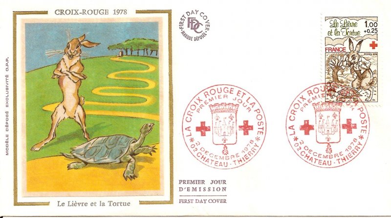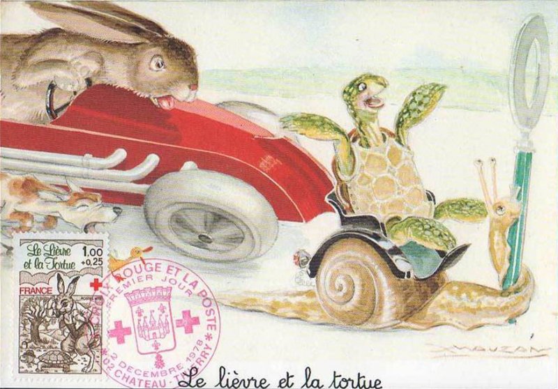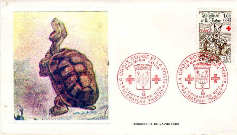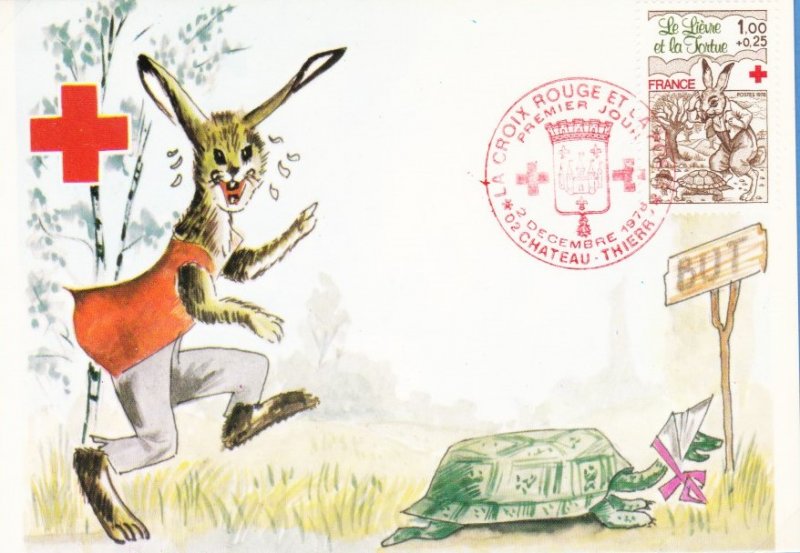 | Description | Au profit de la Croix-Rouge française. Le lièvre et la tortue, fable de Jean de La Fontaine (1621-1695), né à Château-Thierry |