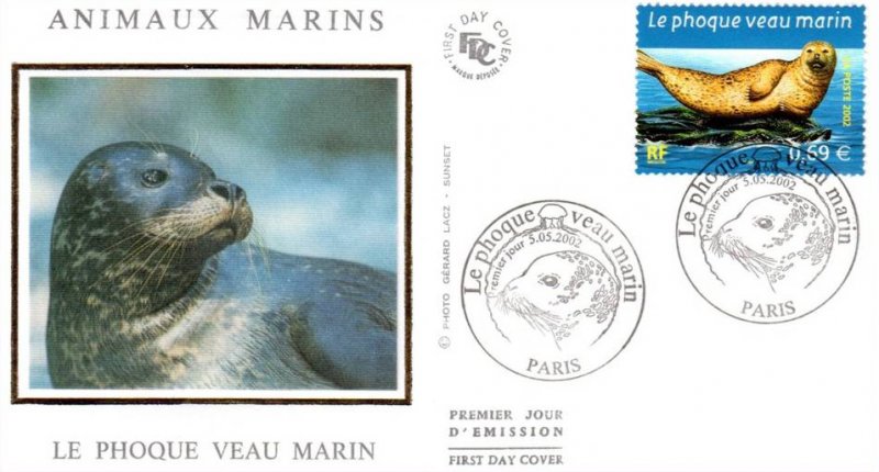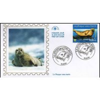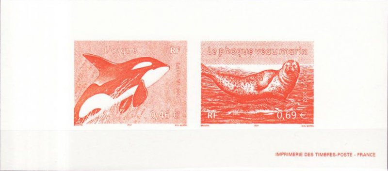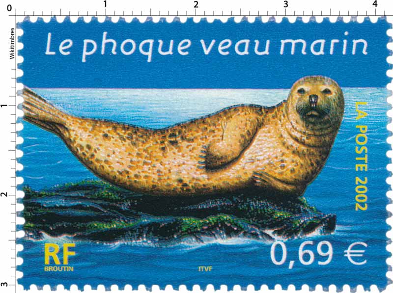 | Commentaire | Description synthétique du visuel du timbre : Les 4 animaux retenus évoluent dans une scène aquatique offrant la vision d’un océan et de son fond sous-marin. Des éléments divers, caractéristiques de cet environnement, animent la composition : corail, méduse, poissons, anémone de mer, algues. Sont mis en scène : une tortue luth, dont la carapace allongée est dépourvue d’écailles, un orque, le plus grand des cétacées, un grand dauphin au corps assez élancé et museau épais relativement court, et un phoque veau marin au corps et tête arrondis. |