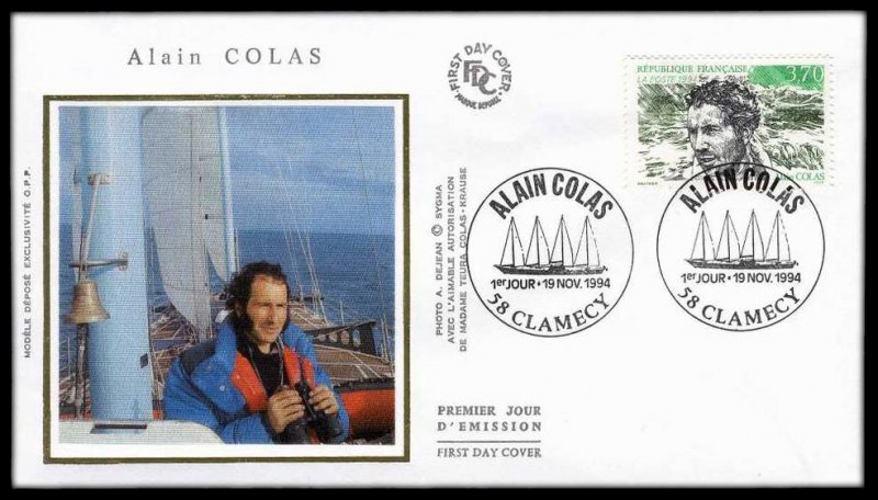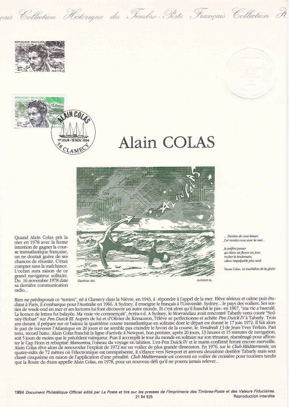 | Description | Hommage à Alain Colas (1943-1978), navigateur disparu en mer au large des Açores, né à Clamecy (Nièvre) |