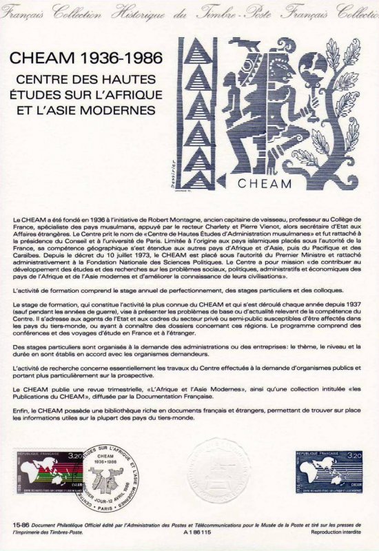 | Description | CHEAM. Centre des Hautes Études sur l'Afrique et l'Asie Modernes (1936-1986) |