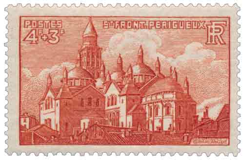 | Commentaire | Visuel : la cathédrale Saint-Front, située dans le centre de la ville, de Périgueux, est classée monument historique depuis 1840 et au patrimoine mondial de l'UNESCO depuis 1998, au titre des Chemins de Saint-Jacques-de-Compostelle, sur la "Via Lemovicensis" (de Vézelay) en France. Construite entre 1125 et1150, Saint-Front fut d'abord église abbatiale, puis collégiale et devint cathédrale en 1669, à la suite de la mutilation de la cathédrale primitive Saint-Etienne. L'église à coupoles du XIIe siècle a été érigée en basilique mineure en 1897. Dominant la ville par-dessus la rivière l'Isle, elle tient son originalité de son architecture particulière, exemple rare en France, d’une église en forme de croix grecque. Elle fût remaniée de nombreuses fois pour être entièrement restaurée (presque reconstruite) par l’architecte Paul Abadie (1812-1884) à la fin du XIXe siècle. Elle subira encore quelques modifications par la suite. Elle reste aujourd’hui un magnifique témoignage de l’art roman -byzantin avec ses deux nefs, chacune divisée en trois travées, ses cinq coupoles, dominées par l’imposant clocher de 67 mètres qui date du XIIe siècle, et les 23 clochetons qui ne sont pas sans rappeler l’église Saint Marc de Venise. |