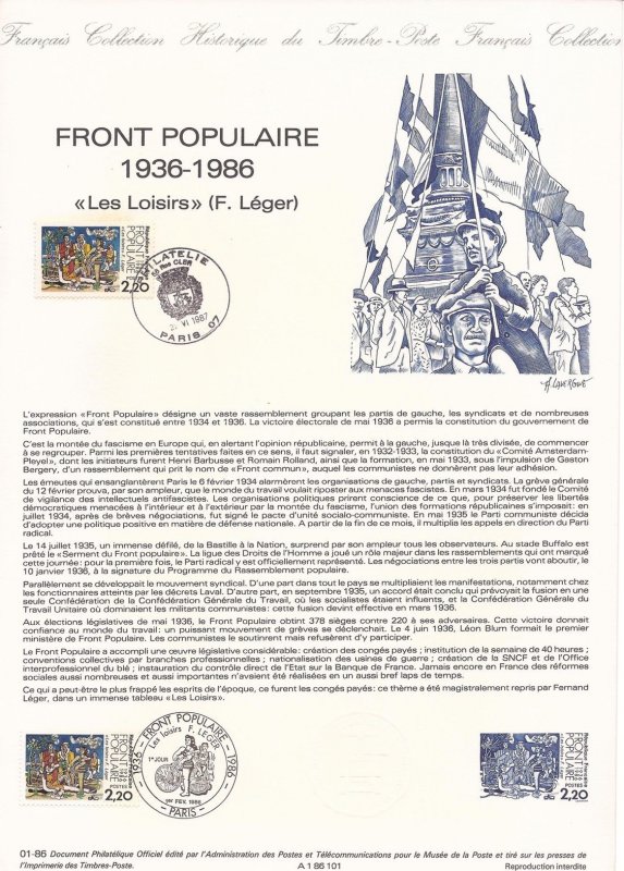 | Description | Cinquantenaire du front populaire (1936-1986), illustré par les loisirs de Fernand Léger (1881-1955), peintre, né à Argentan (Orne) |