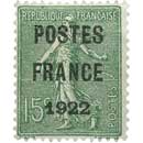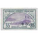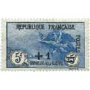 | Commentaire | Tranchées - Orphelins de la Guerre. Le 5 c sur 35 c + 25 c « Tranchée et drapeau », mis en vente le 1er septembre 1922, appartient à la seconde série des timbres des Orphelins de la guerre surchargés, réalisée à partir des planches originales de 1917. Le dessin, signé Louis Dumoulin et gravé par Léon Henri Ruffé, illustre une scène de tranchée avec un soldat brandissant le drapeau français — un hommage direct aux combattants de la Grande Guerre. Imprimé en typographie, dentelé 13½ × 14 et présenté en feuilles de 75 timbres, ce timbre conserve la combinaison de couleurs ardoise et violet du type d'origine. La surcharge « 5 c » adapte la valeur à la fiscalité postale et à la surtaxe caritative destinée à soutenir les orphelins et Pupilles de la Nation après le conflit. En circulation jusqu’au 31 août 1934, ce timbre constitue l’un des visuels les plus symboliques et recherchés de la série des Orphelins de la guerre. |