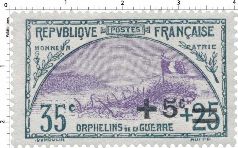 | Description | Au profit des Orphelins de la guerre. Surchargé. Tranchée et drapeau |