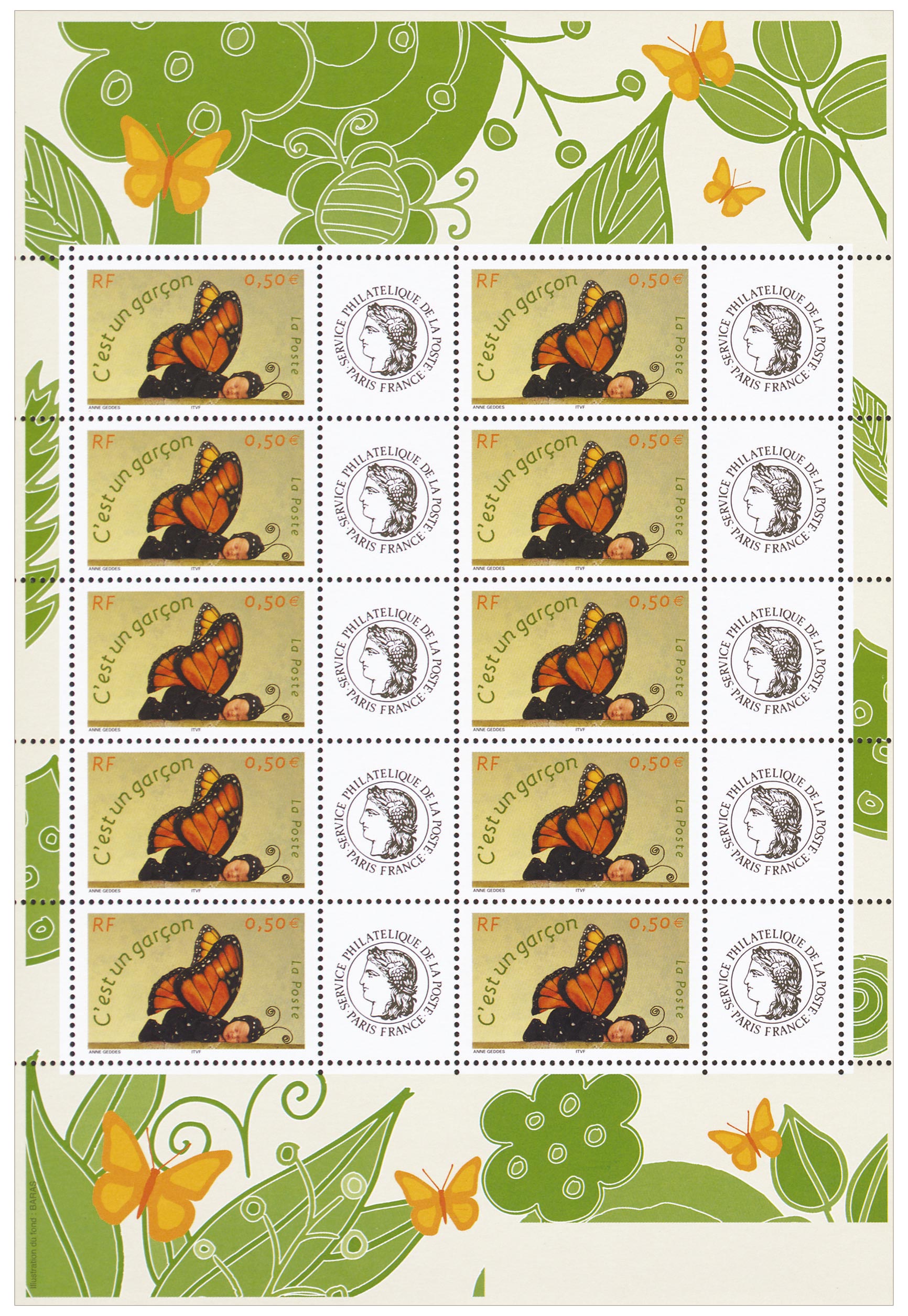 | Description | Timbre pour naissances. C'est un garçon. Type du T.-P. de même date. Avec vignette Cérès |