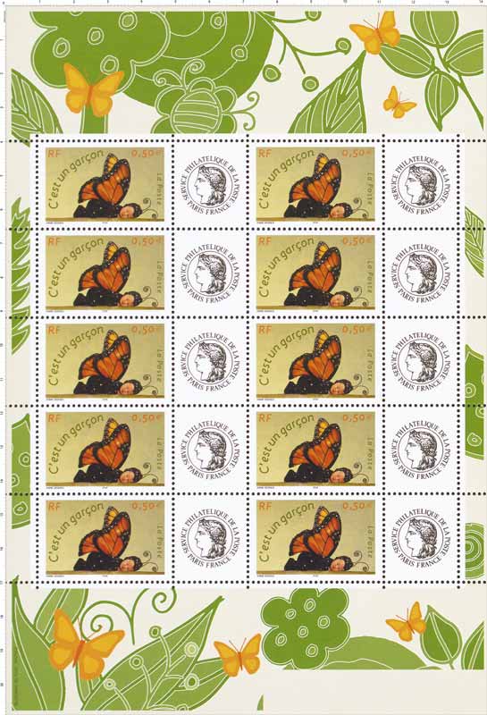 | Description | Timbre pour naissances. C'est un garçon. Type du T.-P. de même date. Avec vignette Cérès |