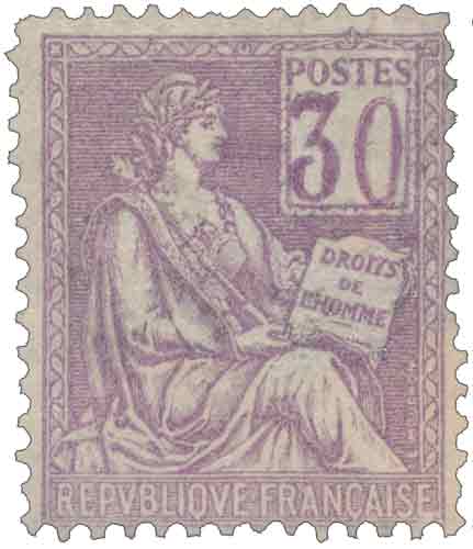 | Commentaire | Mouchon. Émis le 4 décembre 1900, le 30 centimes violet au type Mouchon I complète la série des valeurs intermédiaires introduites pour remplacer progressivement les derniers timbres Sage. Cette valeur est principalement utilisée pour les lettres du deuxième échelon de poids, ainsi que pour divers affranchissements composés du régime intérieur et international. Le Type I correspond au dessin original de Louis-Eugène Mouchon, encore non retouché : lignes fines, modelé léger et absence des renforcements de gravure visibles dans le Type II à partir de 1902. La teinte violette, souvent sujette à des variations d’intensité, se retrouve dans des nuances allant du violet clair au violet plus soutenu selon les tirages. Avec environ 11 millions d’exemplaires, cette valeur est moins courante que les 10 c ou 25 c du même type, ce qui explique son intérêt particulier en oblitéré authentique. Les plis affranchis à 30 centimes sont assez recherchés car ils illustrent des usages tarifaires moins fréquents au début du XXᵉ siècle. Le timbre est retiré en avril 1902, juste avant les retouches générales menant au Type II. Aucun faux d’époque notable n’est répertorié. |