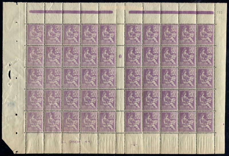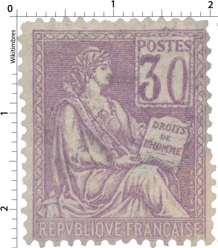 | Commentaire | Mouchon. Émis le 4 décembre 1900, le 30 centimes violet au type Mouchon I complète la série des valeurs intermédiaires introduites pour remplacer progressivement les derniers timbres Sage. Cette valeur est principalement utilisée pour les lettres du deuxième échelon de poids, ainsi que pour divers affranchissements composés du régime intérieur et international. Le Type I correspond au dessin original de Louis-Eugène Mouchon, encore non retouché : lignes fines, modelé léger et absence des renforcements de gravure visibles dans le Type II à partir de 1902. La teinte violette, souvent sujette à des variations d’intensité, se retrouve dans des nuances allant du violet clair au violet plus soutenu selon les tirages. Avec environ 11 millions d’exemplaires, cette valeur est moins courante que les 10 c ou 25 c du même type, ce qui explique son intérêt particulier en oblitéré authentique. Les plis affranchis à 30 centimes sont assez recherchés car ils illustrent des usages tarifaires moins fréquents au début du XXᵉ siècle. Le timbre est retiré en avril 1902, juste avant les retouches générales menant au Type II. Aucun faux d’époque notable n’est répertorié. |