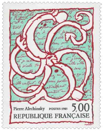 | Commentaire | Issu de la série consacrée aux arts plastiques contemporains, ce timbre met à l’honneur une œuvre originale de Pierre Alechinsky, figure majeure de la création artistique européenne de l’après-guerre. Formé à Bruxelles aux arts du livre et à la typographie, Alechinsky a très tôt développé une approche singulière de la peinture, pensée comme une extension de l’écriture et du geste graphique. Son adhésion au mouvement CoBrA à partir de 1949 marque une étape déterminante, inscrivant son travail dans une dynamique collective fondée sur la spontanéité, l’énergie du trait et le refus des conventions académiques. Ce timbre renvoie à une œuvre conçue spécifiquement pour l’émission postale, traduisant les préoccupations constantes de l’artiste autour du mouvement, du cycle et de la transformation. La composition, construite sur un principe circulaire, s’inscrit dans une réflexion symbolique où se croisent références à l’écriture, à l’ésotérisme et à la notion de continuité, éléments récurrents dans l’univers d’Alechinsky. L’arrière-plan calligraphié, inspiré d’un texte de Michel Butor, souligne le lien étroit qu’il entretient entre peinture et littérature, dimension essentielle de son œuvre depuis les années 1950. Cette émission témoigne de la reconnaissance institutionnelle accordée à un artiste dont le travail, souvent volontairement complexe et polysémique, invite à une lecture à plusieurs niveaux, privilégiant le sens latent plutôt que l’évidence formelle. Par ce timbre, la politique postale française affirme son intérêt pour les formes les plus contemporaines de la création et pour des artistes qui, sans provocation gratuite, interrogent les modes de perception et les rapports entre image, signe et écriture. Ce timbre illustre ainsi la place accordée à l’expérimentation et à la liberté plastique dans les émissions culturelles françaises du milieu des années 1980. Article rédigé pour WikiTimbres |