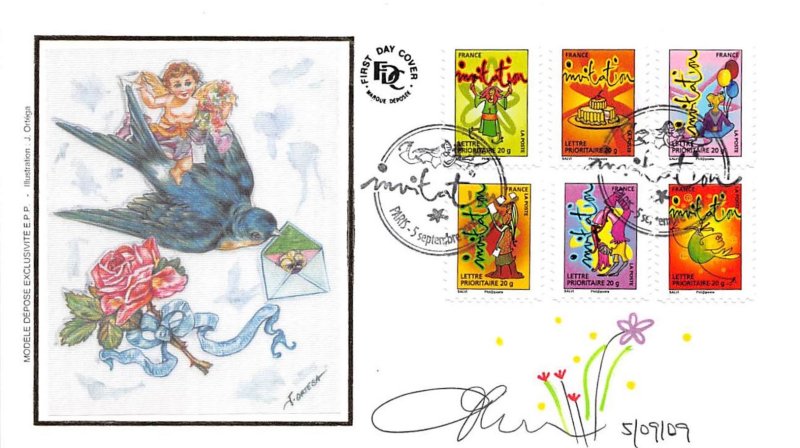 | Commentaire | La mise en vente anticipée a lieu le 5 septembre au Jardin d'acclimatation de Paris. Salvi reprend un de ses personnages en plein saut pour illustrer le cachet premier jour. « votre bonne humeur », « vos bonnes nouvelles », « votre enthousiasme », « vos envols », « vos fantaisies », « votre joie de vivre », « vos mots doux », « vos mystères », « votre patience », « vos promesses », « vos secrets », « vos surprises » ou « tous vos élans ». Timbre sans millésime |