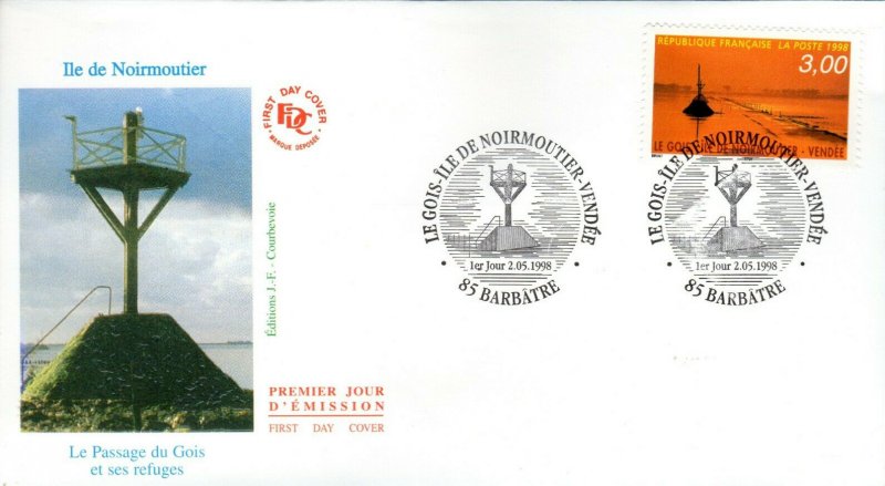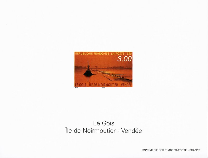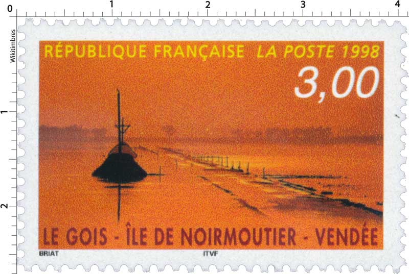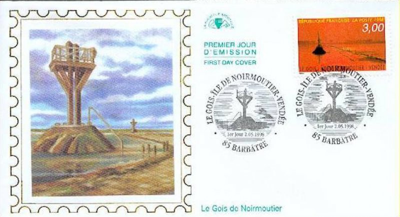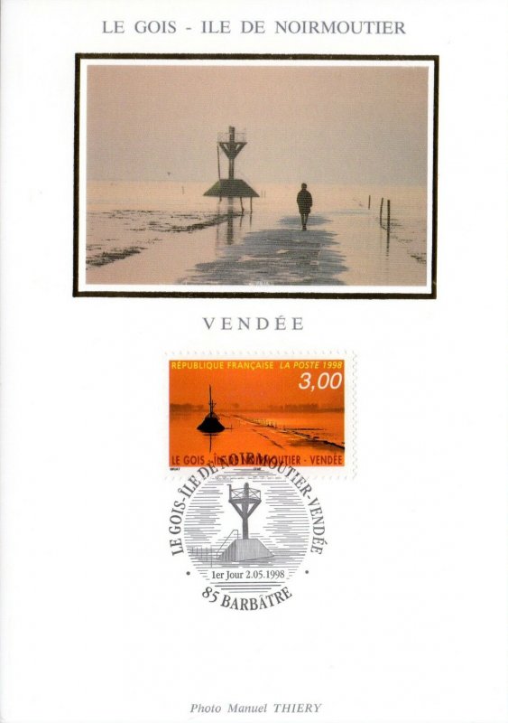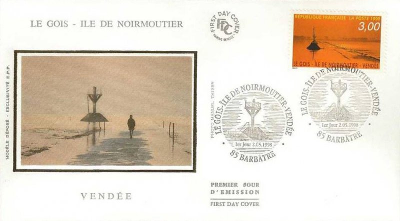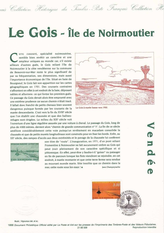 | Description | Le Gois. Ile de Noirmoutier (Vendée) et représentation du passage du Gois, ce chemin relie à marée basse l'île de Noirmoutier au reste de la Vendée |