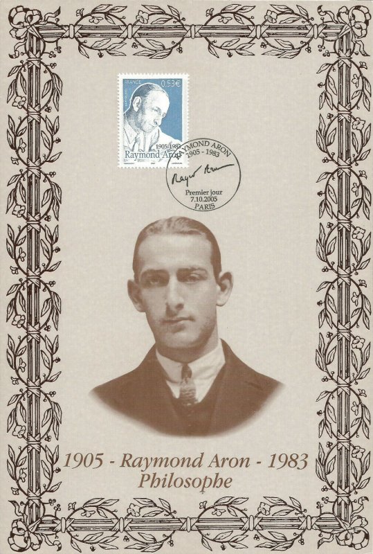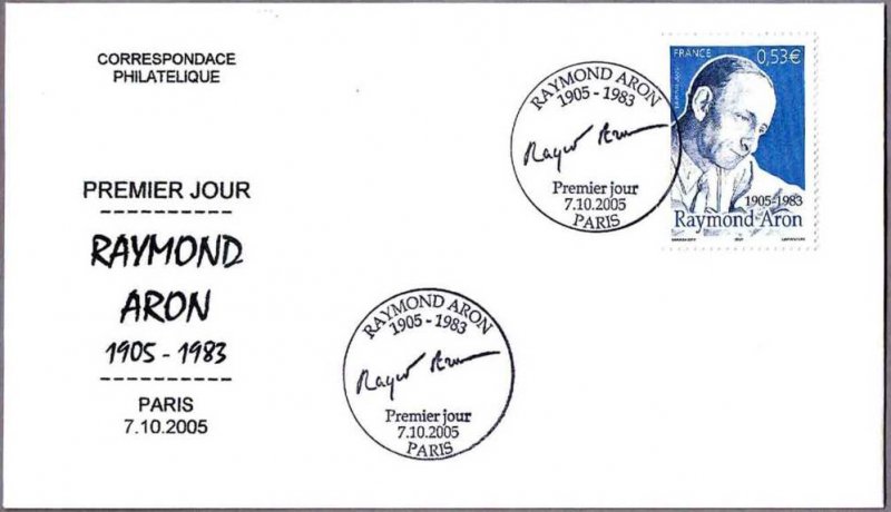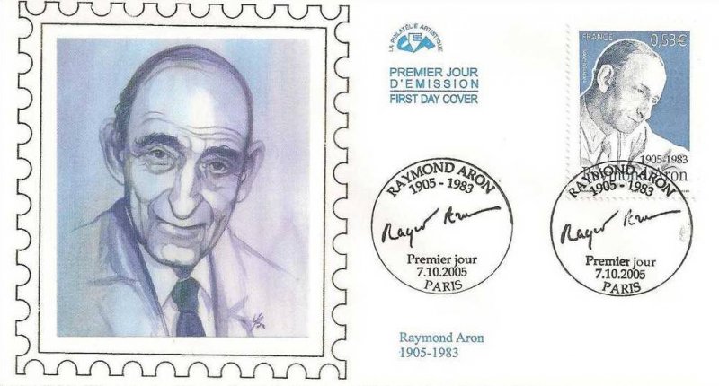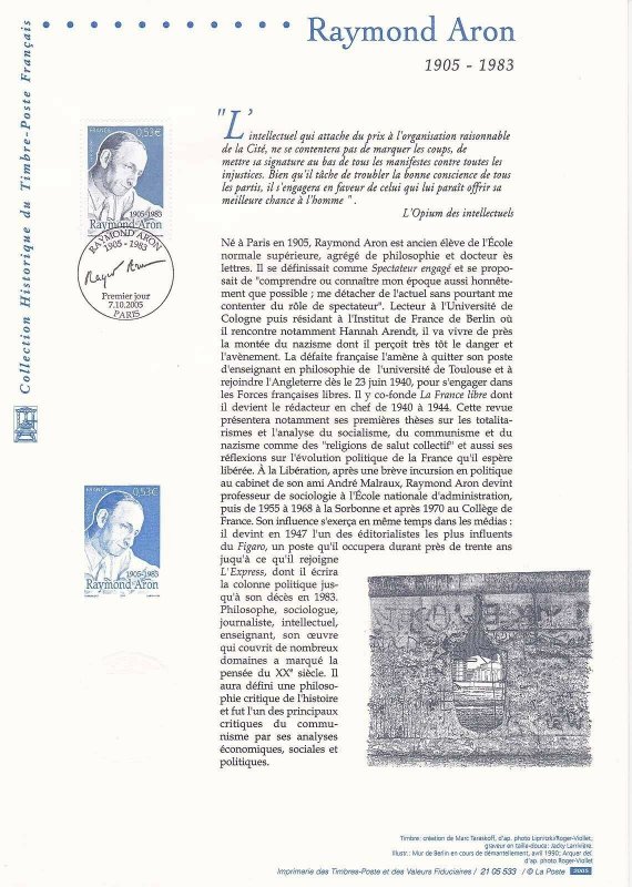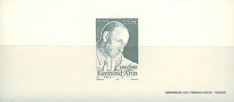 | Description | Raymond Aron, Philosophe et sociologue (1905-1983), philosophe, sociologue, politologue et journaliste français, né à Paris. Timbre émis pour le centenaire de sa naissance |