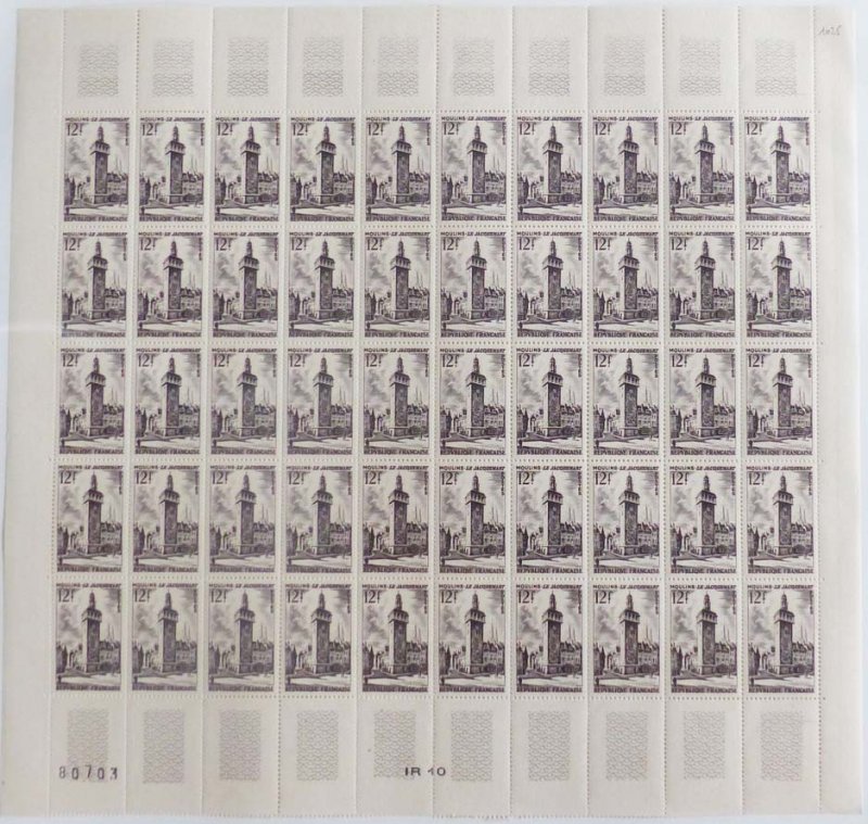 Émis en 1955 dans la série française des sites et monuments, le timbre-poste représentant le Jacquemart de Moulins met en valeur un beffroi emblématique du Bourbonnais et s’inscrit dans une politique philatélique de célébration du patrimoine urbain, la figurine gravée en taille-douce et imprimée en format vertical associant l’horloge monumentale et ses automates à l’identité civique de la cité de Moulins, dont l’histoire est marquée par l’affirmation des libertés communales face au pouvoir ducal, l’iconographie rappelant le rôle symbolique du beffroi édifié au XVe siècle et enrichi au XVIIe siècle d’un campanile animé, tandis que l’usage postal correspond à l’affranchissement de la carte postale pour le régime intérieur, assurant une diffusion courante, et la place de ce timbre dans les émissions de 1955 soulignant l’attachement de la France à la sauvegarde et à la transmission de ses monuments provinciaux, une information historiquement établie étant que le Jacquemart fut détruit par un incendie en 1946 avant d’être restauré grâce à la mobilisation locale.
