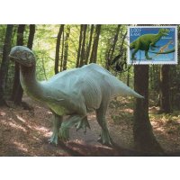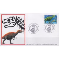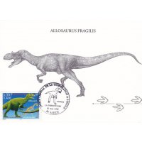 | Commentaire | Description synthétique du visuel du timbre : Avec le Jurassique (de – 208 millions d’années à – 144 millions d’années), commence véritablement l’âge d’or des dinosaures. L’Allosaure, mesurant onze mètres de long et pesant deux tonnes, fut l’un des plus grands carnivores du Jurassique. L’allosaure dont le squelette est conservé dans la Galerie de paléontologie du Muséum national d’histoire naturelle, témoigne de la richesse et de la diversité de la nature. Le procédé graphique consistant à tronquer le sujet pour en répartir sa représentation sur deux timbres, contribue à créer un concept très original. |
