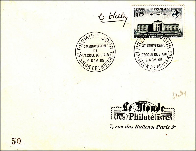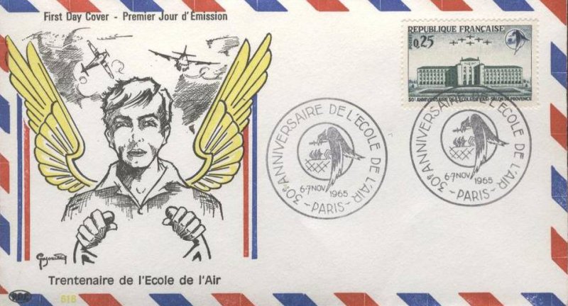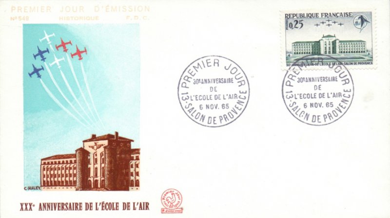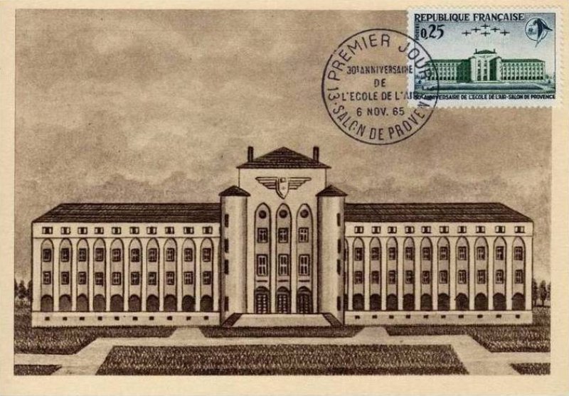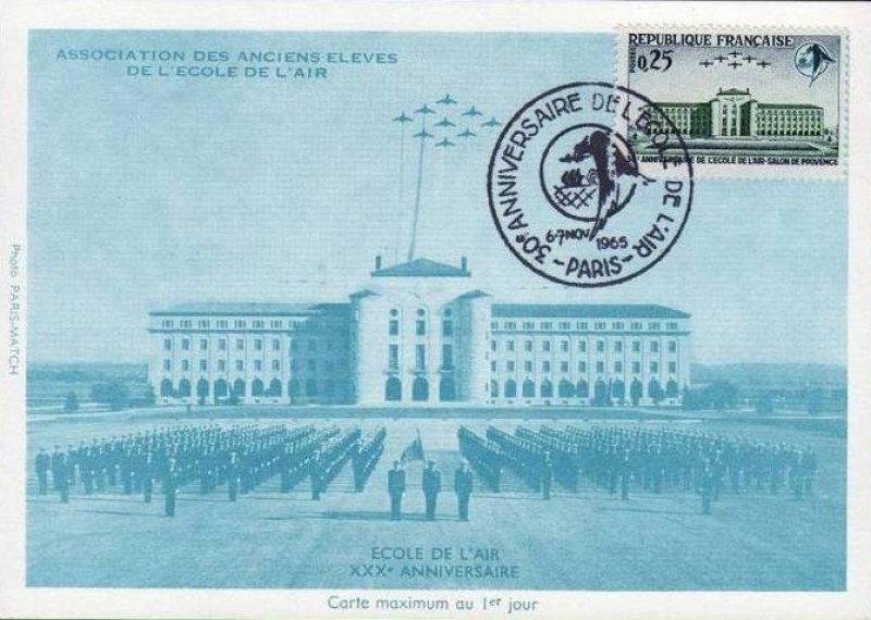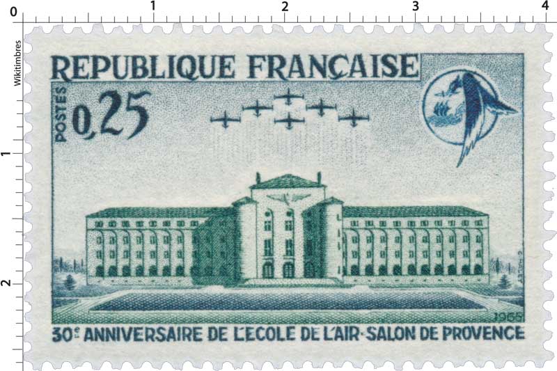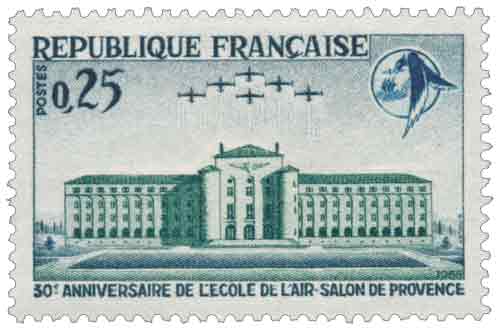 | Commentaire | C’est une école dont le nom claque comme une aile dans le vent : l’École de l’Air de Salon-de-Provence, qui fêtait en 1965 ses trente ans d’existence — et quelle existence. Créée en 1935 pour former l’élite de l’aviation militaire française, elle est d’abord installée à Versailles, avant de poser ses valises (et ses avions) dans le ciel bleu de la Provence. Sa première promotion porte déjà un nom chargé de légende : Georges Guynemer, l’as de la Grande Guerre, tombé à 23 ans après 53 victoires. Ça donne le ton. Mais très vite, l’histoire rattrape les jeunes "poussins" de Salon : en 1939, à peine sortis de l’école, ils sont envoyés au front. Certains combattront dans le ciel russe avec l’escadrille Normandie-Niemen. D’autres entrent dans la Résistance. Beaucoup n’en reviendront pas : 176 morts en cinq promotions... ça glace. Et pourtant, l’École ne lâche rien. Même dissoute en 1942 par le régime de Vichy, elle continue d’exister — clandestinement, à Marrakech ou sous de faux noms. En 1946, elle revient officiellement à Salon. Nouvelle promo, nouveau parrain : Saint-Exupéry, évidemment. Cette année-là, l’École reçoit aussi la Légion d’honneur, comme pour saluer sa ténacité et son panache. Depuis, elle a grandi. Trois concours distincts, des formations modernisées, plus de 200 élèves chaque année. Et cette fameuse tradition de la remise des poignards : un aigle adulte transmet symboliquement l’arme aux jeunes aiglons. Frissons garantis. Leur devise ? Faire face. Sobre. Droit. Comme une trajectoire bien tenue dans un ciel agité. Alors oui, ça peut paraître un peu martial, tout ça. Mais derrière les uniformes et les rituels, il y a une école d’excellence, d’engagement — et d’histoire. Une histoire qui vole haut, depuis 1935, sans jamais vraiment redescendre. WikiTimbres |