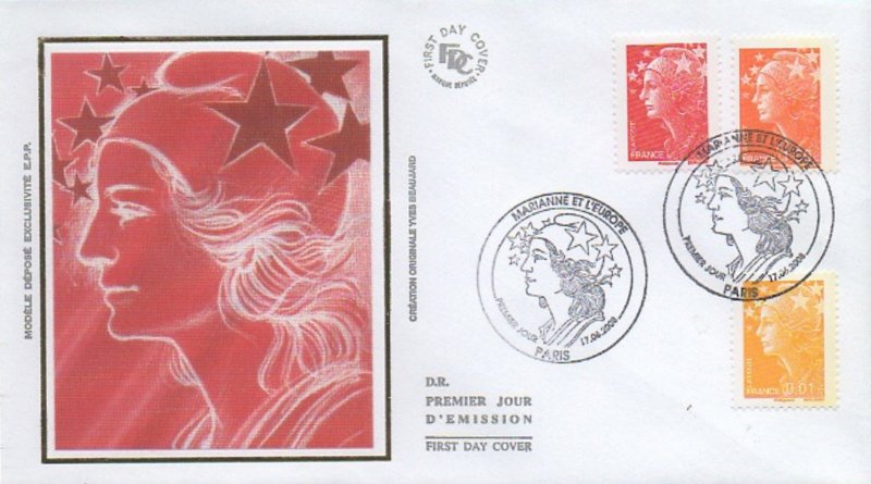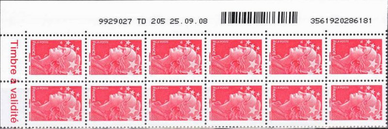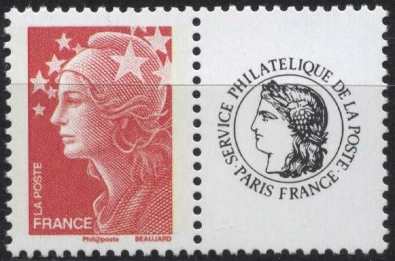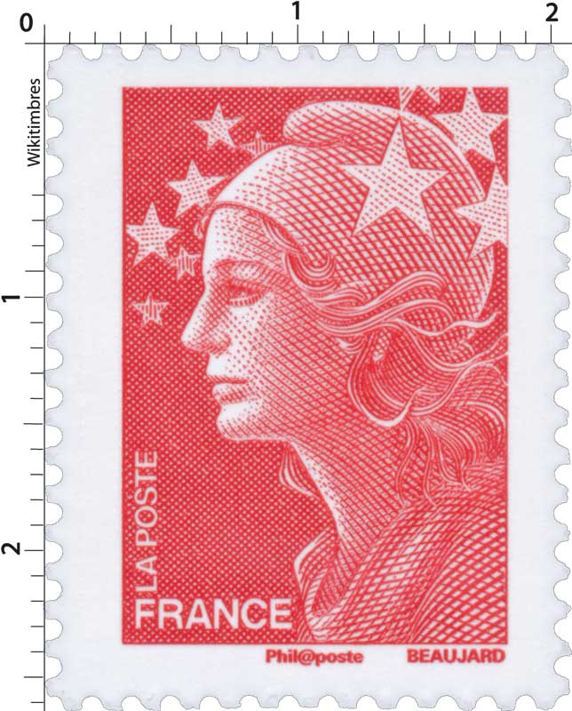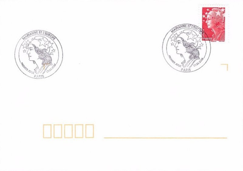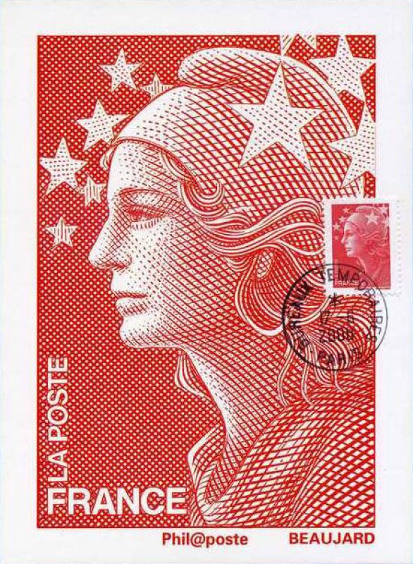 | Commentaire | Validité permanente (TVP)Du 26 octobre 2007 au 16 novembre 2007, La Poste a organisé un concours de dessins sur le thème de « Marianne et l’Europe » visant à sélectionner un dessin en vue de le reproduire sur des produits philatéliques, et plus particulièrement sur le timbre-poste courant appelé « La Marianne » qui sera émis en juillet 2008. Le dessin d’Yves Beaujard a été sélectionné par le Président de la République parmi tous les autres dessins concourants. |