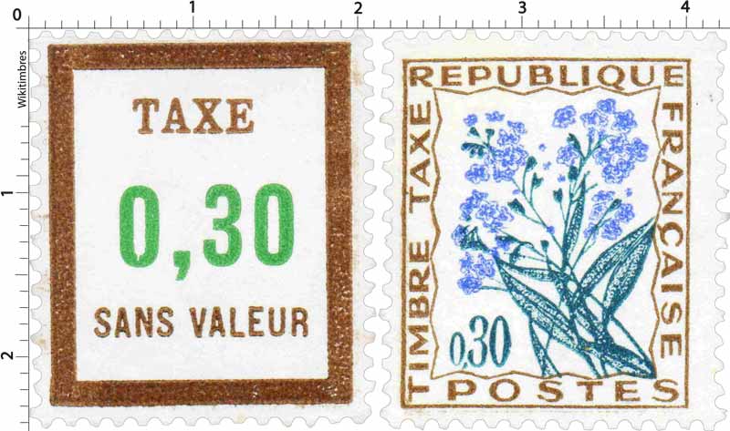 Timbre : 1976 TAXE SANS VALEUR Mesures Format d'imp 18 x 20 mm Dents incluses 20 x 24 mm Forme horizontal Phosphore Non Impression Typographie rotative Complément xxxxx Couleur brun et vert Valeur 0,30 Dentelure - Emis en feuille de 100 TP Quantité - Auteurs Dessinateur xxxxx Graveur xxxxx Mise en page xxxxx Mentions - Numéros & Dates N° Philatelix - N° Michel - Date d'émission 01/01/1976 Date de retrait - Classements Groupe Fictif les timbres-taxe de 1976 Catégorie Fictif Familles Usage - Régions - Départements - Description Rapprochement avec le TAXE-1964-1 Commentaire - Mes timbres & notes personnelles www.wikitimbres.fr