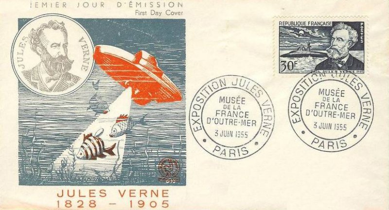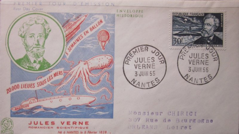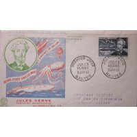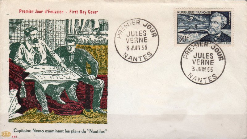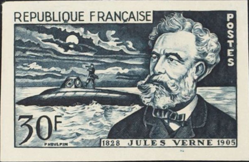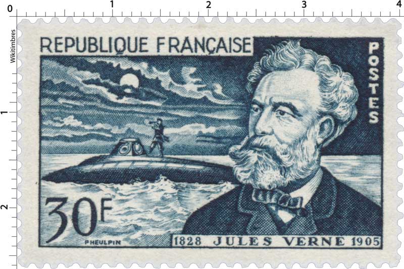 | Description | Cinquantenaire de la mort de Jules Verne (1828-1905), né à Nantes. Évocation de 20 000 lieues sous les mers, avec le Nautilus |