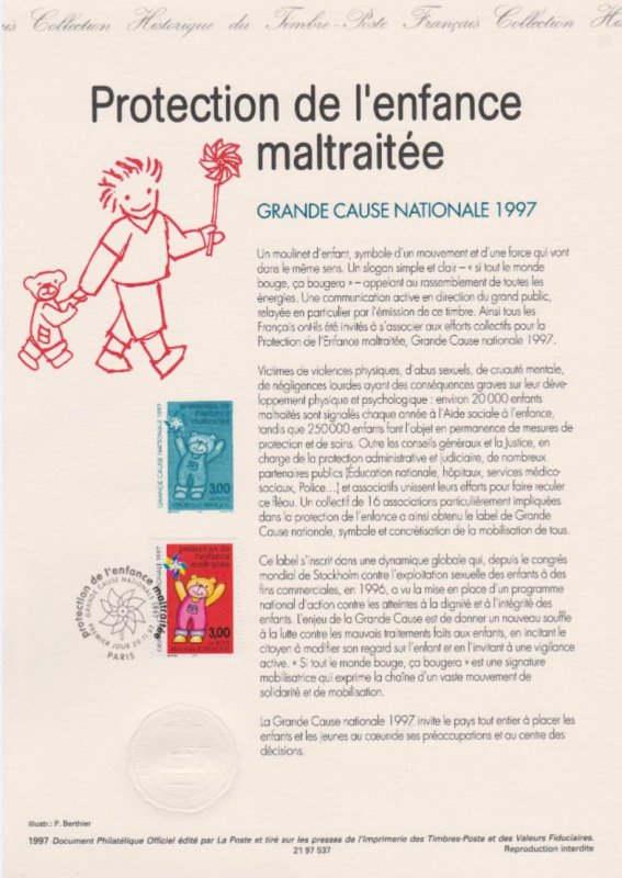 | Description | Protection de l'enfance maltraitée, ce phénomène a été déclarée « grande cause nationale » par le Premier ministre Alain Juppé |