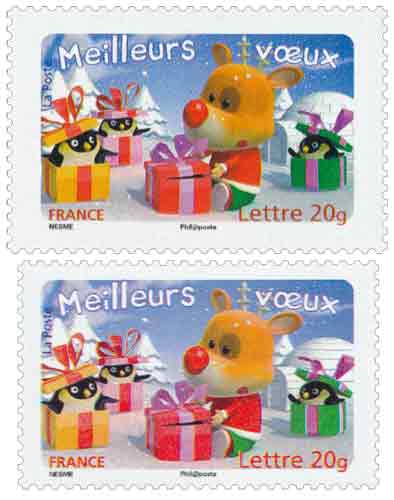 | Description | Meilleurs Vœux, provenant du bloc souvenir, au dessus format dents incluses : 40 x 26 mm au lieu 38 x 24 mm pour ceux provenant de mini-feuille personnalisée (la taille d'impression est inchangée) |