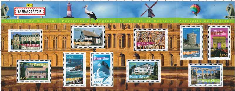 Timbre : Portraits de régions LA FRANCE À VOIR N°2 Mesures Format d'imp - Dents incluses 286 x 110 mm Forme horizontal Phosphore 2 barres phosphorescentes Impression héliogravure Complément xxxxx Couleur polychrome Valeur 5 € Dentelure 13 Emis en bloc-feuillet de 10 TP Quantité - Auteurs Dessinateur Bruno Ghiringhelli Graveur xxxxx Mise en page Bruno Ghiringhelli Mentions Création de Bruno Ghiringhelli Numéros & Dates N° Philatelix - N° Michel 3746 K Date d'émission 22/09/2003 Date de retrait 14/12/2007 Classements Groupe Portraits de régions : La France à voir 2003 Catégorie Blocs et Feuillets Familles sites et paysages patrimoine Usage lettres simples Régions - Départements - Description Portraits de régions. La France à voir. Commentaire - Mes timbres & notes personnelles www.wikitimbres.fr