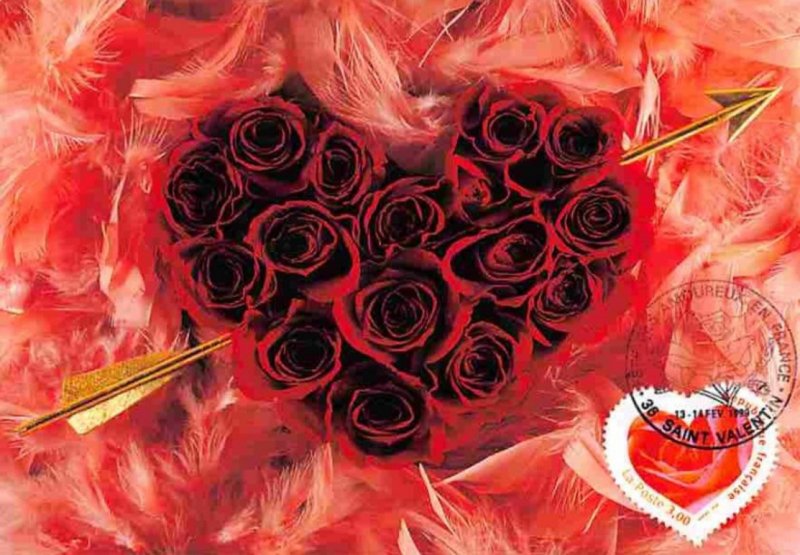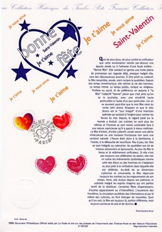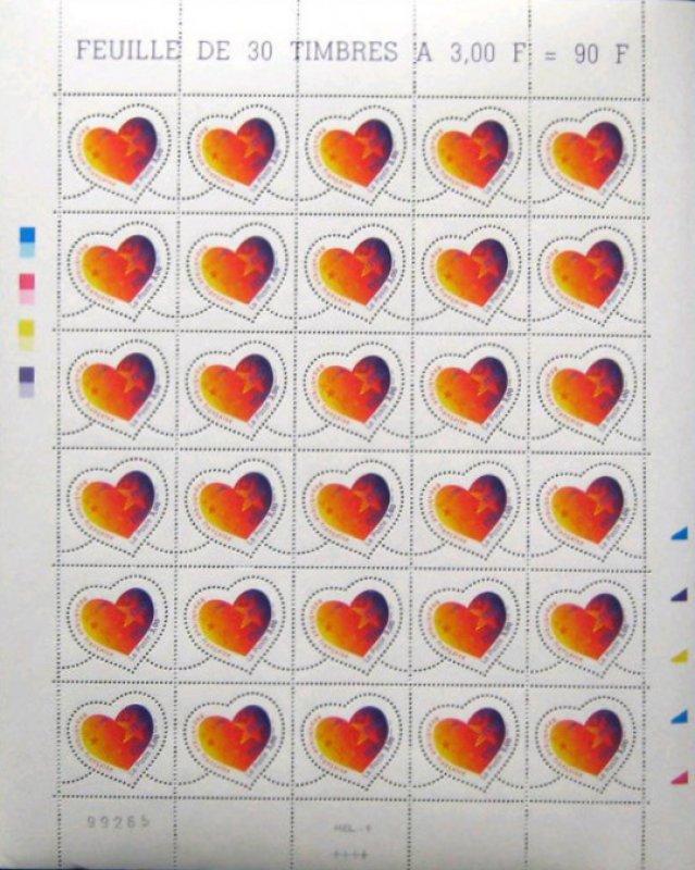 | Description | Timbres de souhaits. Timbres de Saint-Valentin Cœur avec Je t'aime et étoiles. Carnet. Adhésif. |