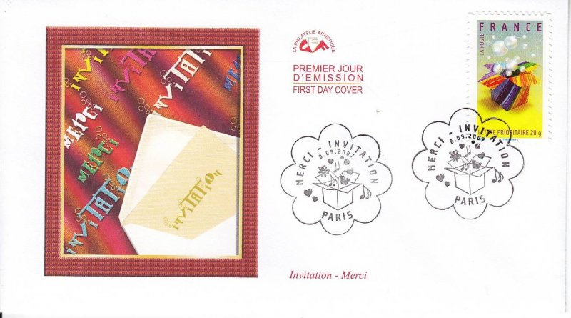 | Description | Timbres de messages. Invitation. Boîte d'où s'échappent des bulles, issus du carnet de 5 TP Merci Invitation Festif, les timbres à stickers |