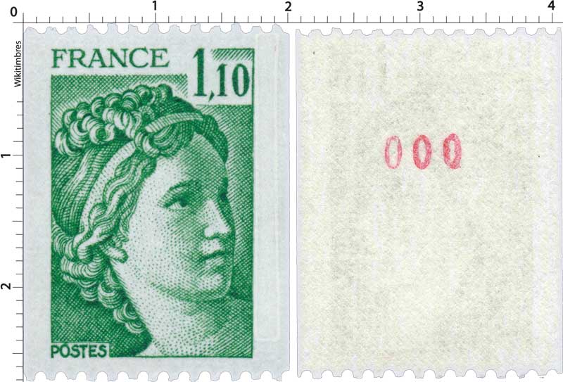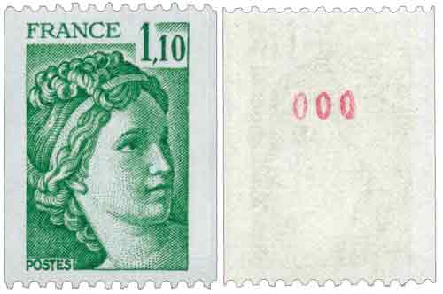 | Commentaire | Roulette de 1000 timbres avec numérotation au dos, en rouge tous les 10 timbres. Le premier numéro est 000, le dernier est 010. La gomme est mate ou dite tropicale. |