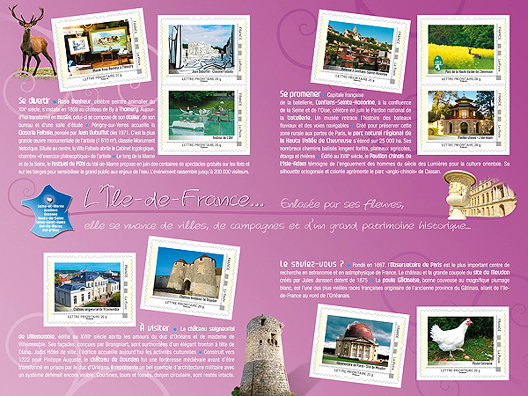 | Commentaire | Musée Rosa Bonheur à Thomery, Jean Dubuffet – Closerie Falbala, festival de l’oh!, Château de Villemomble, Château médiéval de Dourdan, Bateaux à Conflans Sainte- Honorine, Parc de la Haute Vallée de Chevreuse, Pavillon chinois – L’ Isle Adam, Observatoire de Paris-Site de Meudon, Poule Gâtinaise |