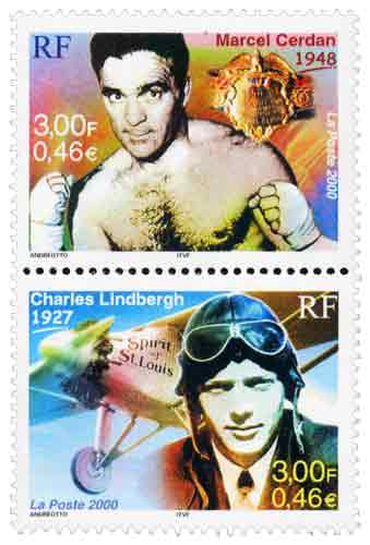 | Description | Paire se tenant : Marcel Cerdan (champion du monde des poids moyens en 1948) et Charles Lindbergh 1927 |
