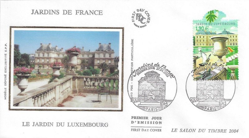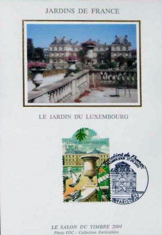 | Commentaire | LE SALON DU TIMBRE 2004 Rambarde du Jardin du Luxembourg. Description synthétique du visuel du timbre : Le salon philatélique 2004 se déroulera au parc floral. Deux blocs évoquant les parcs et jardins de France seront émis à cette occasion. Le 1er bloc à paraître en 2003 met à l’honneur le parc des Buttes-Chaumont, jardin paysager donnant l’illusion de paysages naturels et variés, inspiré des parcs anglais, et le jardin du Luxembourg, de style français, offrant une grandiose ordonnance et de larges perspectives classiques. Ce bloc intègre 2 timbres de format original, jamais réalisé. Le bloc présente également une découpe originale et est conçu pour être plié de façon à évoquer l’ouverture d’un portail sur un jardin. |
