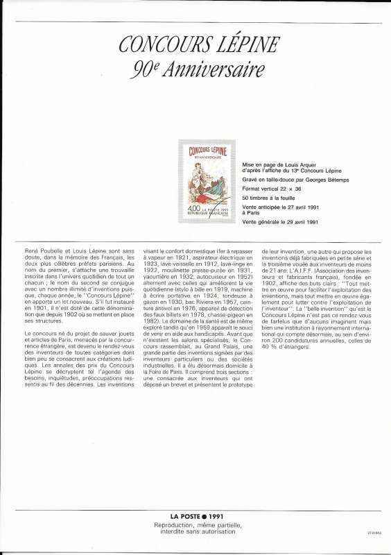 | Description | 90e anniversaire du Concours Lépine, créé en 1901 par Louis Lépine (1846-1933), avocat et homme politique, né à Lyon |