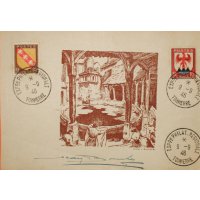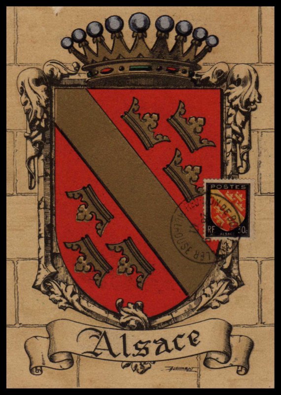 | Commentaire | "Parti au premier de gueules à la barre d'argent côtoyée de deux cotices fleuronnées du même et aussi de gueules à la bande d'or accompagnée de six couronnes du même, trois en chef et renversées en pointe".