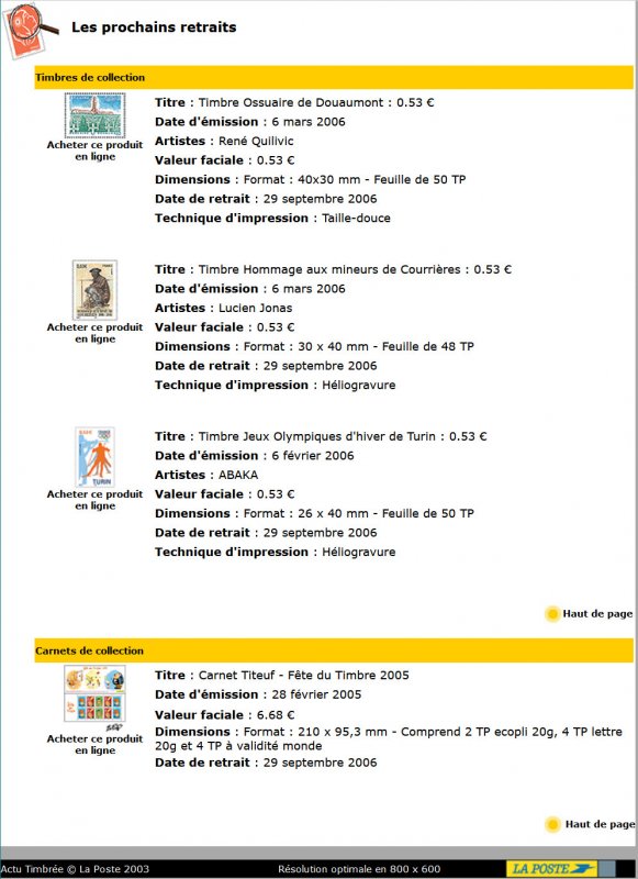 | Commentaire | Le TP de feuille a bien été retiré le 28/04/2006, mais le carnet ne l'a été que le 29/09/2006 - Source : "Actu timbrée" de La Poste 2009/09 |