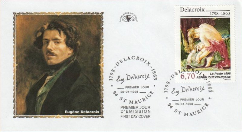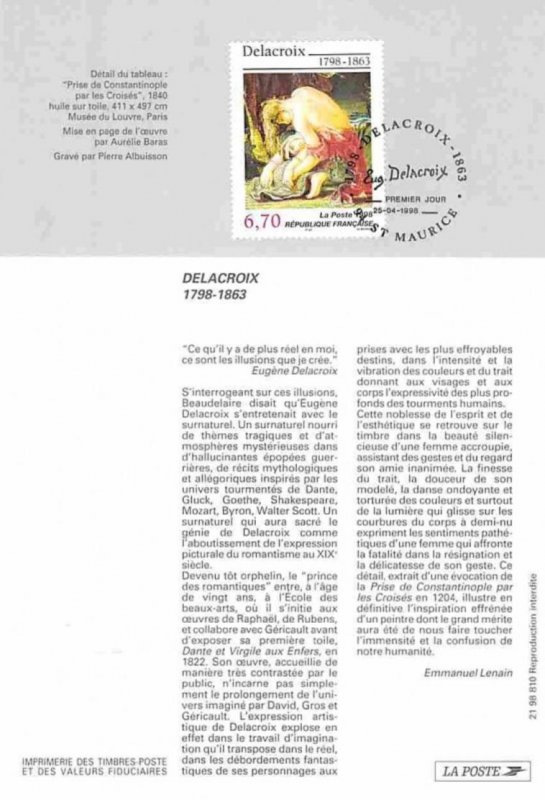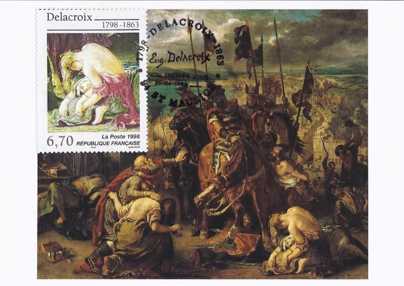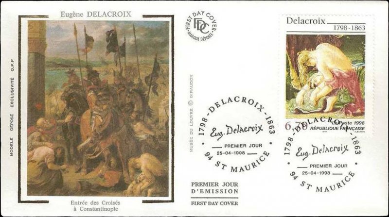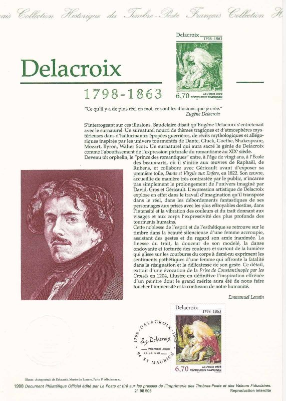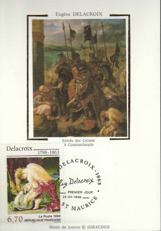 | Description | Bicentenaire de la naissance du peintre Eugène Delacroix (1798-1863), né à Charenton-Saint-Maurice. Reproduction d'un détail de l'œuvre entrée des Croisés à Constantinople |