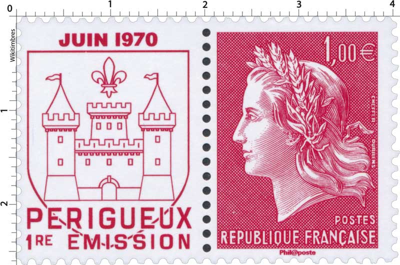 | Description | Marianne de Cheffer, 40e anniversaire du premier timbre émis à Boulazac (Dordogne) |