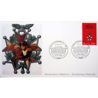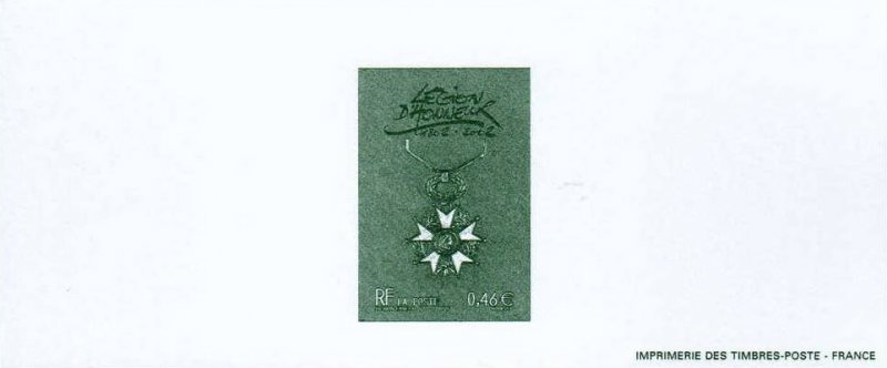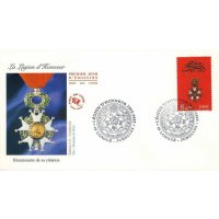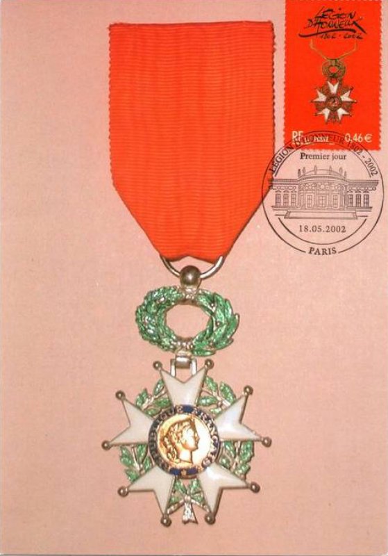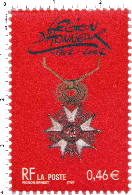 | Commentaire | Description synthétique du visuel du timbre : Le 19 mai 1802, le Premier Consul Bonaparte signait le décret instituant l’Ordre national de la Légion d’honneur, regroupant une élite nouvelle représentant toutes les activités de la Nation, associant militaires et civils. L’insigne est une étoile à 5 rayons doubles émaillés de blanc, aux pointes boutonnées. Les rayons sont reliés par une couronne émaillée de vert, composée de feuilles de chêne à droite et de feuilles de laurier à gauche. Le centre de l’étoile présente un médaillon en or (effigie de la République) entouré de bleu. L’étoile est suspendue à une couronne également émaillée de vert. L’insigne est accroché à un ruban de moire rouge, reprenant la couleur de l’Ordre de Saint-Louis. Un timbre émis à l’occasion du bicentenaire vient rappeler aux Français la place que tient la Légion d’honneur dans l’histoire de la Nation et dans son présent. |