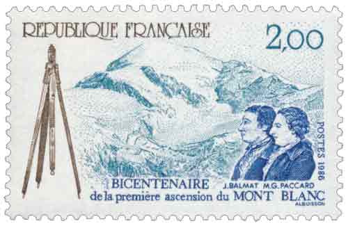 | Description | Bicentenaire de la première ascension du Mont-Blanc (1786) par Jacques Balmat (1762-1834) et le docteur Michel Gabriel Paccard (1757-1827), nés à Chamonix |