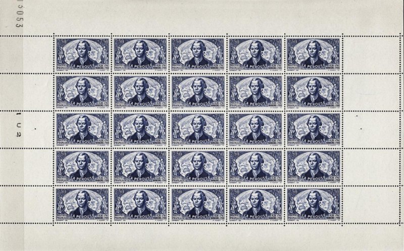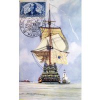 | Commentaire | Visuel : Jean François de Galaup, comte de La Pérouse, le globe terrestre et les deux frégates "L'Astrolabe" et "La Boussole" du voyage de découvertes autour du monde, partie de Brest en 1785 et qui disparaissent à Vanikoro (îles Santa Cruz, ou "Temotu" en mer de Corail) lors du naufrage de 1788 en Océanie. - Grand passionné de géographie, c'est Louis XVI en personne qui avait commandité l'expédition de La Pérouse, d'après des témoignages de l'époque, il parait qu'au moment de monter à l'échafaud, il demanda une dernière fois si l'on avait des nouvelles de Monsieur de la Pérouse. En savoir plus sur Wikipédia : Jean-François de La Pérouse |