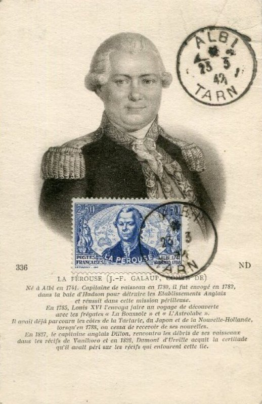 | Description | Au profit du Secours national. Bicentenaire de la naissance de Jean François de Galaup, comte de La Pérouse (1741-1788), explorateur, né près d'Albi |