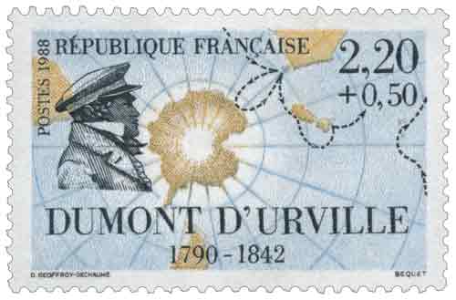 | Commentaire | Ce timbre est consacré à Jules Dumont d’Urville, officier de marine, explorateur et savant français dont l’action s’inscrit à la fois dans l’histoire des grandes explorations maritimes et dans celle de la connaissance scientifique du XIXᵉ siècle. Né en 1790 en Normandie, Dumont d’Urville se distingue très tôt par sa curiosité intellectuelle et son esprit d’initiative, illustrés notamment par son rôle décisif dans l’identification de la statue antique connue sous le nom de Vénus de Milo, acquise par la France en 1820. Sa carrière maritime est marquée par plusieurs expéditions majeures dans l’océan Pacifique à bord de La Coquille puis de L’Astrolabe, au cours desquelles il contribue à la cartographie de régions encore mal connues et à l’enrichissement des collections scientifiques françaises. L’une de ses missions les plus marquantes consiste à établir, en 1828, que l’expédition de La Pérouse s’est achevée tragiquement près de l’île de Vanikoro, mettant fin à un mystère qui préoccupait la France depuis quarante ans. Lors d’un nouveau voyage entre 1837 et 1840, Dumont d’Urville découvre une portion du continent antarctique qu’il baptise terre Adélie, en hommage à son épouse, inscrivant durablement la présence scientifique française dans les régions australes. Émis en 1988 dans la série Marins et explorateurs, ce timbre s’inscrit dans une politique commémorative visant à rappeler le rôle central des navigateurs français dans l’exploration du monde et dans la diffusion du savoir, tout en soulignant la dimension scientifique et humaine de ces entreprises maritimes. Article rédigé pour WikiTimbres |